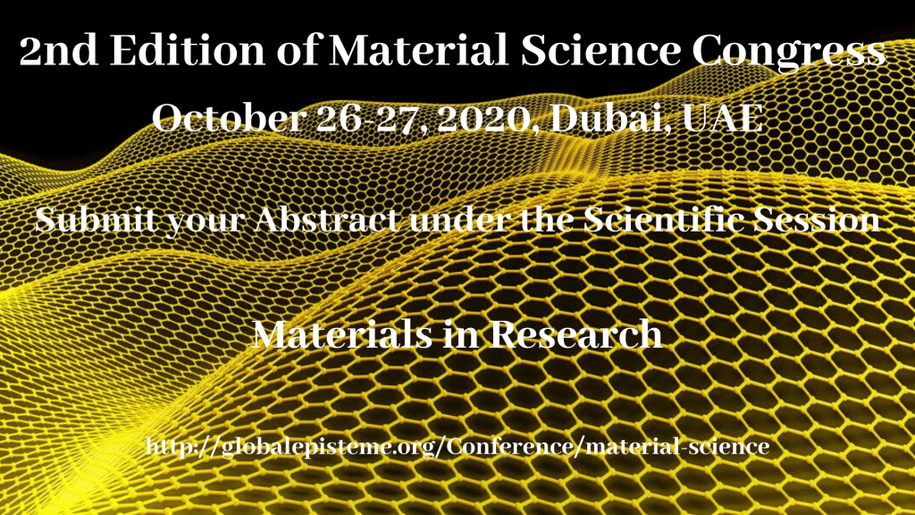 #MaterialScienceConferences2020 #NanoMaterials & #TechnologyMeetings #MaterialScienceEvents #MaterialscienceMeetings #CFPsinMaterialScience #materialscience2020